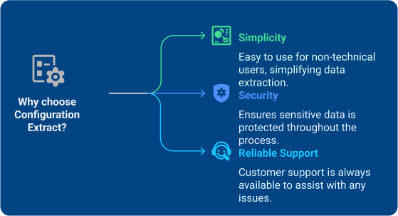 - Simplicity: Unlike other complex tools, Configuration Extract is designed for ease of use, ensuring even non-technical users can perform data extraction without help.