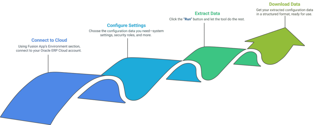 Configuration Extract works seamlessly with your Oracle ERP Cloud environment, ensuring smooth Configuration data extraction without the need for additional technical setup.