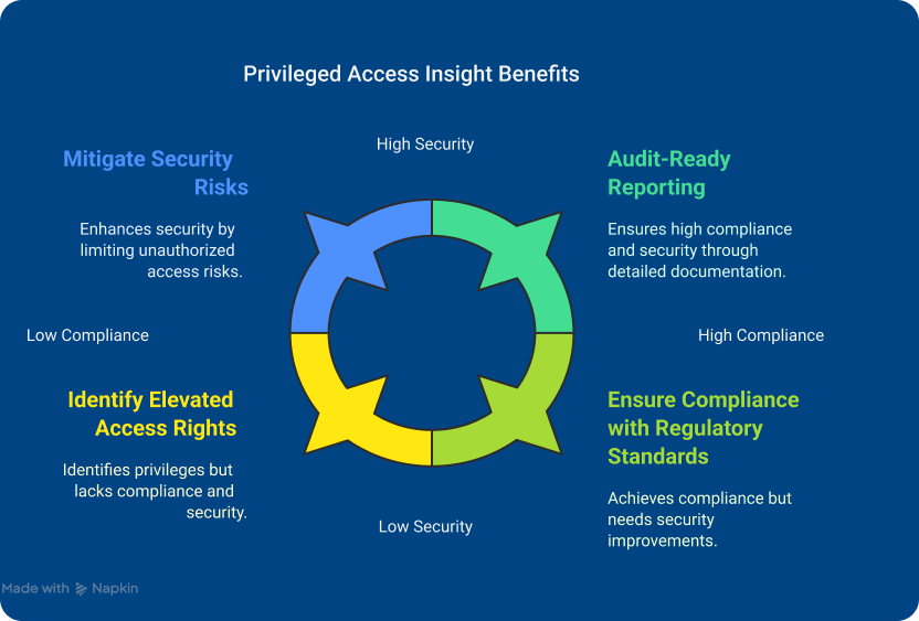 Privileged Access Insight is a robust solution that helps organisations manage users with elevated access rights, providing deep visibility into privileged accounts and their activities. This solution is designed to reduce security risks and ensure compliance with regulatory frameworks by enforcing the principle of least privilege.