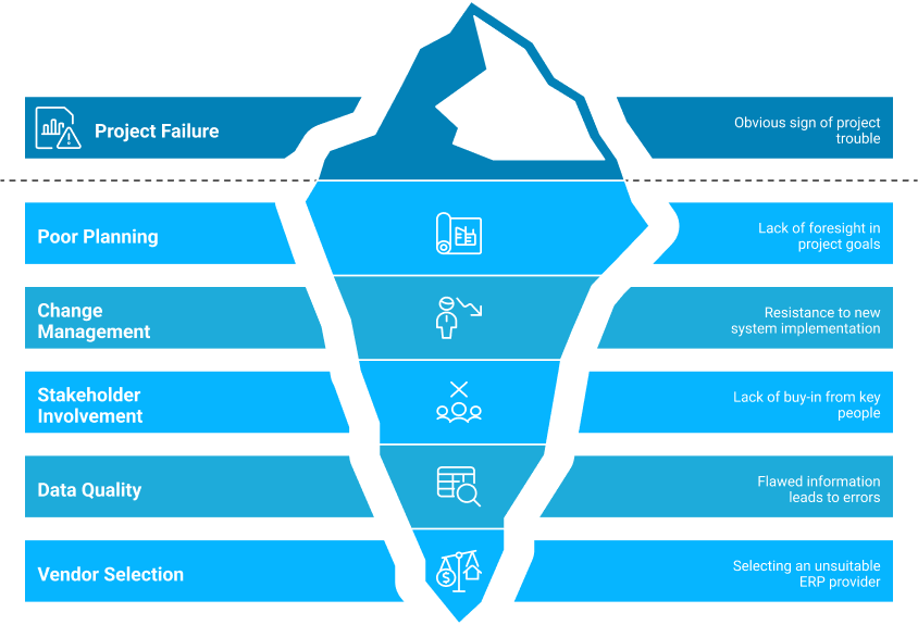 ERP (Enterprise Resource Planning) projects can face various challenges, leading to failure.